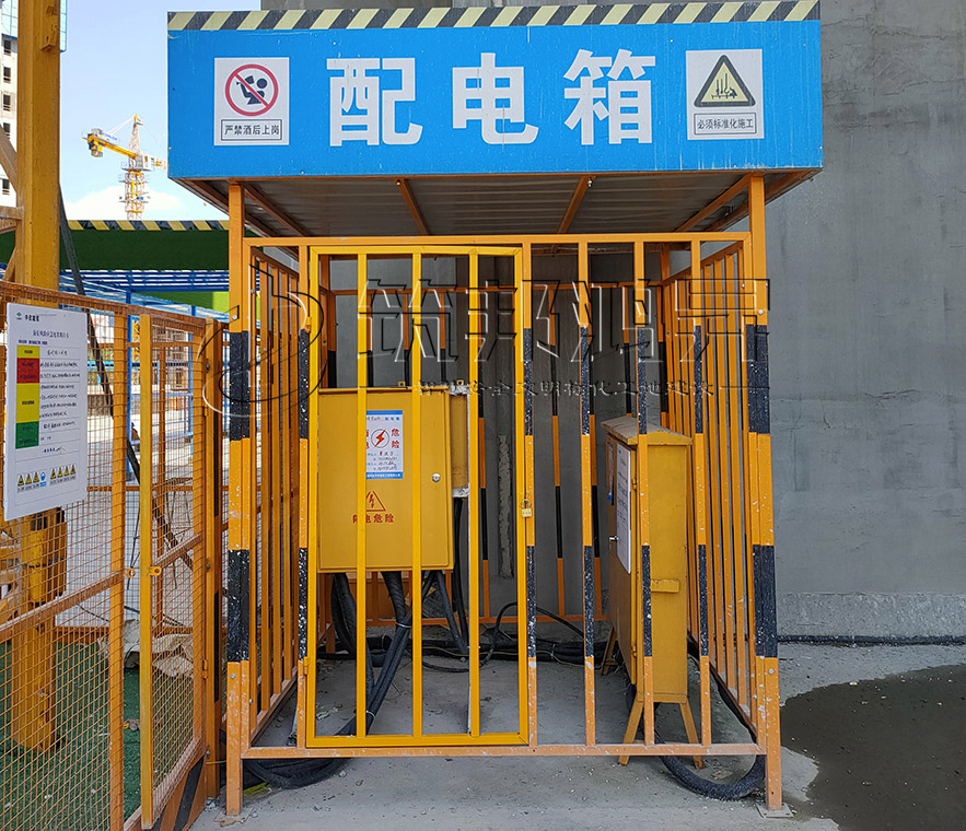施工現(xiàn)場(chǎng)臨時(shí)用電配電箱采用全鋼結(jié)構(gòu)防護(hù)棚,頂部雙層防護(hù),配套側(cè)門可上鎖,整體拼裝方便、使用安全牢靠。